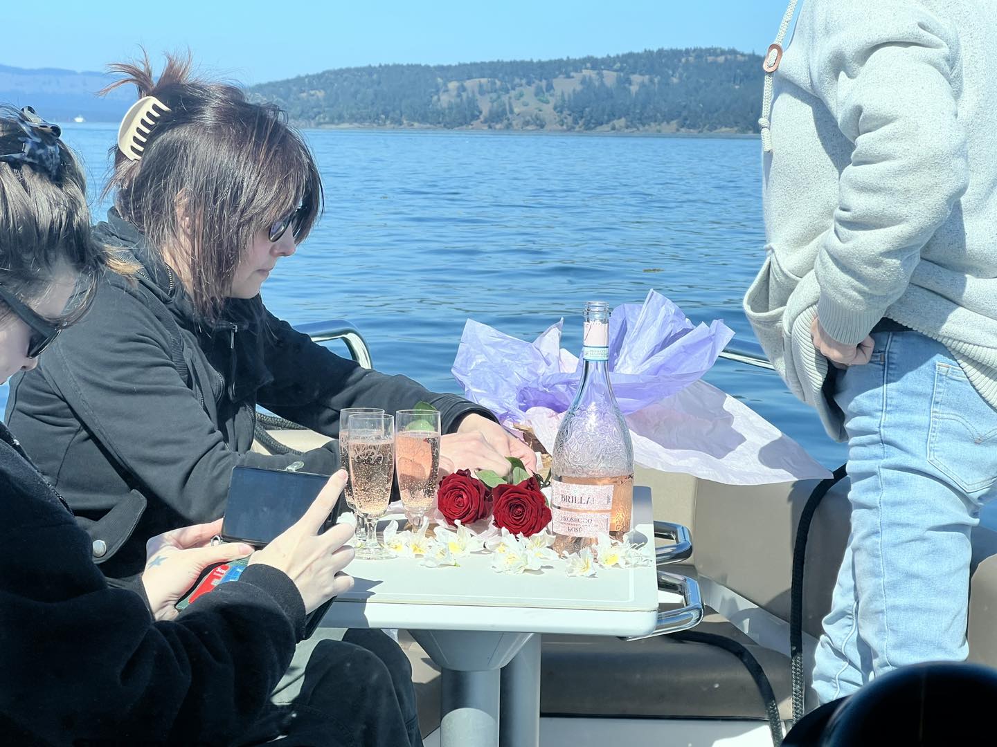 Took 2 friends out to scatter their friends ashes today. They had handmade a biodegradable “boat” for the ashes. The boat sank after about 15 minutes. It took us 20 minutes to boat from Sidney where we met to just out past Gooch Island which is just inside Canadian waters and maybe 10 minutes beyond Sidney Island. The girls spent about 25 minutes on scene scattering flowers around the sinking boat. The raised a glass and reminisced about shared good times with their deceased loved one. On the way home I chose a different route back to the marina for a little bit of sightseeing. The round trip was approximately 90 minutes.